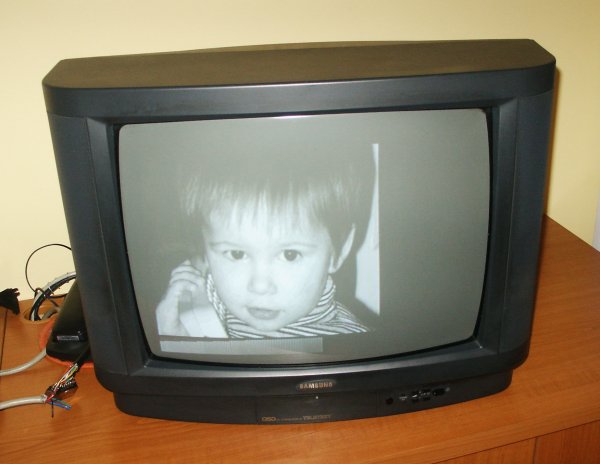 PAL signal from VGA card "...Imagination is more important than knowledge. Knowledge is limited. Imagination encircles the world..." There are quite a lot of ways to generate TV signal from our PC's, these include graphics card having TV-out built in, converters from VGA to PAL, and simple cables with some glue logic to generate synchronisation to convert VGA to EURO connector. But people do not know that it's really possible to generate video signal without any hardware. Simply output TV signal from ordinal VGA card in our PC. It's not a hoax! By adjusting VGA timings and drawing images in a special way we may convince our TV that it's receiving normal video signal on it's luminance (or composite) input. Theory of operation![]() We may look at VGA card as a very fast DAC converter with adjustable generation frequency and 8-bit resolution. By careful adjustment of DAC timing and by using special image we may force VGA card to generate PAL TV signal on any of it's R, G, B channels. Yes! it is possible to generate 3 different images to 3 different TV sets using only ONE graphics card! and without any specialised hardware in between! Each of R, G, B channels is 0,7V p-p with 75R impedance, while composite signal is 1V p-p with 75R impedance. VGA channels have smaller range but it's still enought to generate video. Voltages from 0 (sync) to 0.3V are used for synchronisation, while 0.3 (black) to 0.7 (white) V are for drawing actual image. Cable![]() ![]() I had an old VGA cable which I've divided into 2 parts and old EURO SCART cable. Unfortunetly, my TV does not have composite input so I had little choice. I've connected R signal from VGA connector to Video IN signal from TV. No additional glue logic is neccessary, that's all - just solder two cables!
